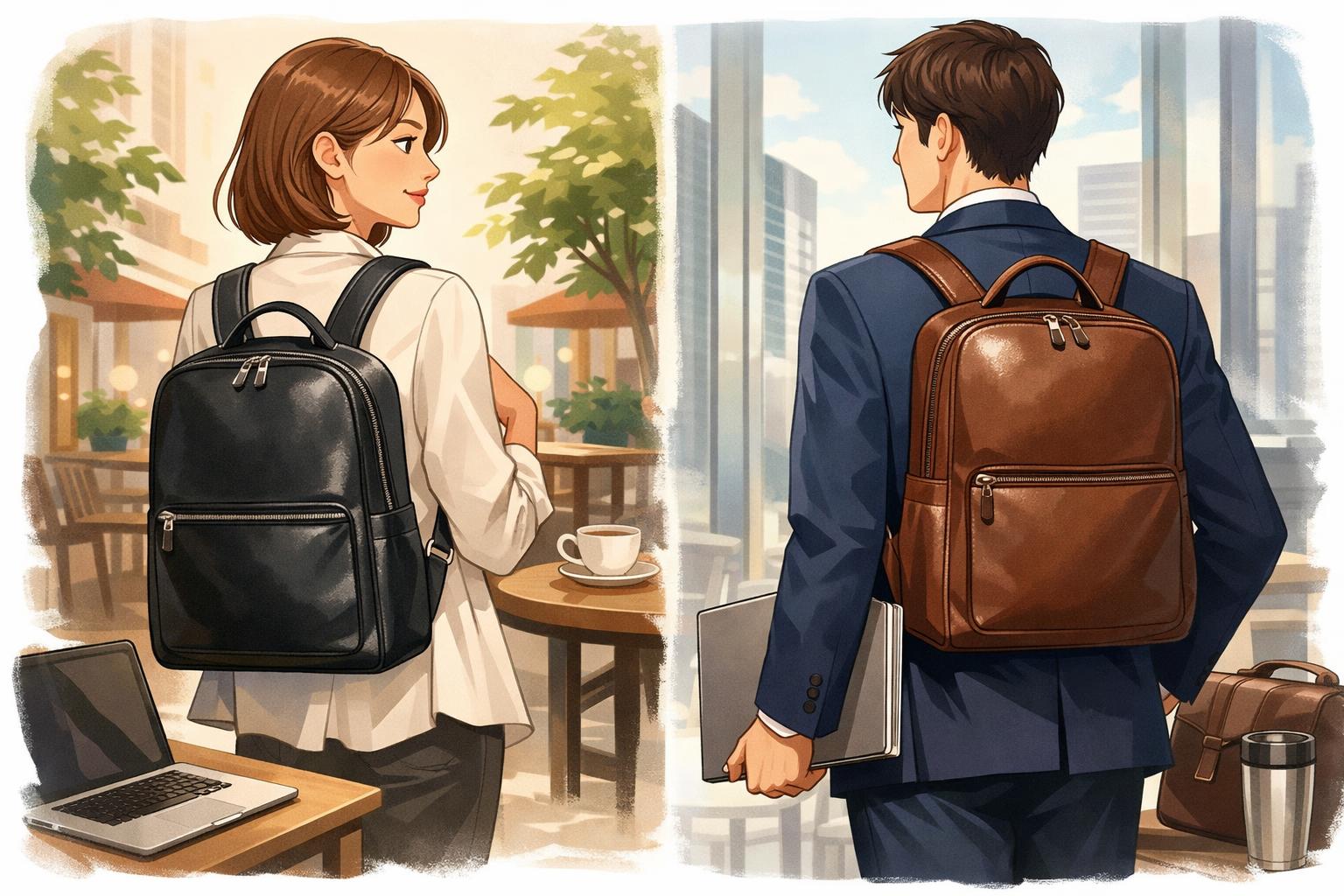 レザーリュックを「いつ、どこで」使うのかを具体的にイメージすることで、選ぶべきデザインやカラーが見えてきます。主な利用シーンである「ビジネス」と「カジュアル」に分けて、最適なリュックのポイントを見ていきましょう。